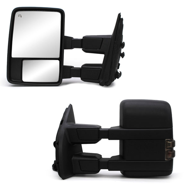WLLW Towing Mirrors fit for 1999-2016 Ford F250 F350 F450 F-550 Super Duty Power Heated Smoke LED Turn Signal Lamp Auxiliary Light Temperature Sensor Pickup Truck Black Housing 40BSF